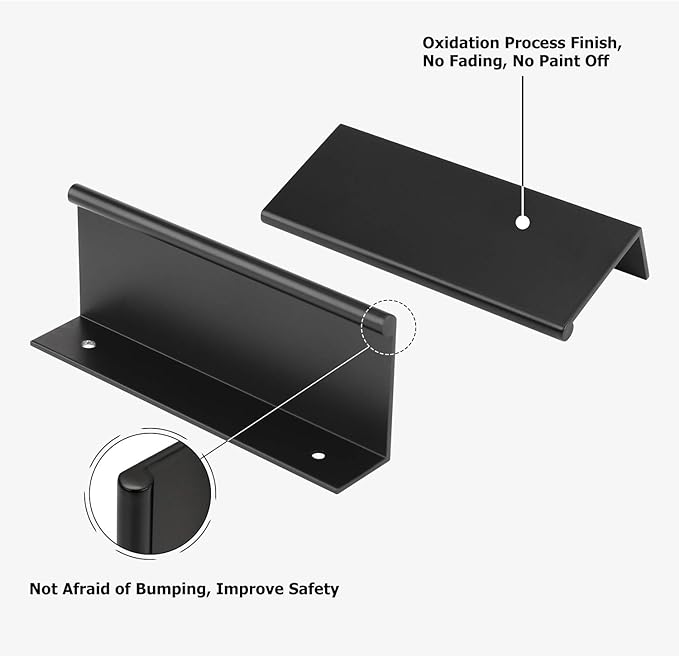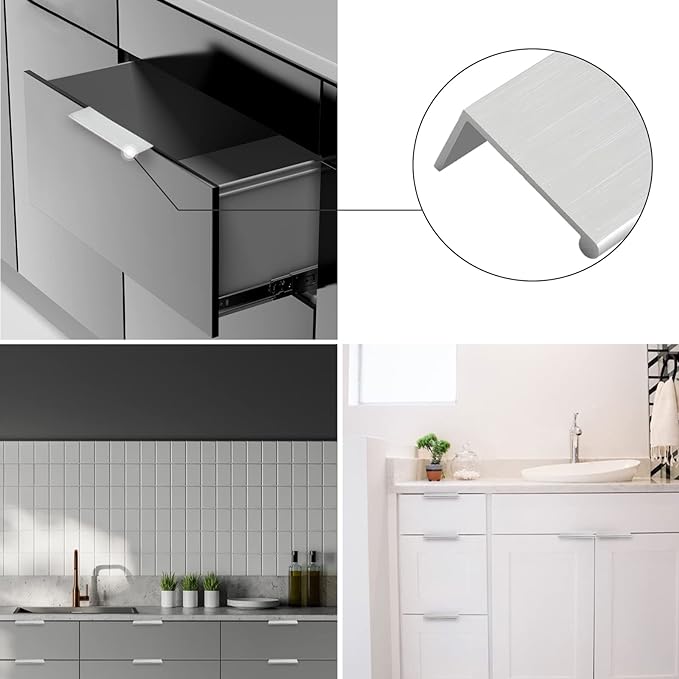 This L-shaped finger pull handle offers two color options: black and silver.The black handle gives a low-key and steady look, making it suitable for modern minimalist, industrial, and other design styles. The silver handle provides a brighter and simpler appearance, pairing well with most home styles, especially modern homes and minimalist designs. By offering two color options, this handle becomes more flexible in color matching, allowing it to complement various home accessories and furniture, ultimately enhancing the overall texture of the space.