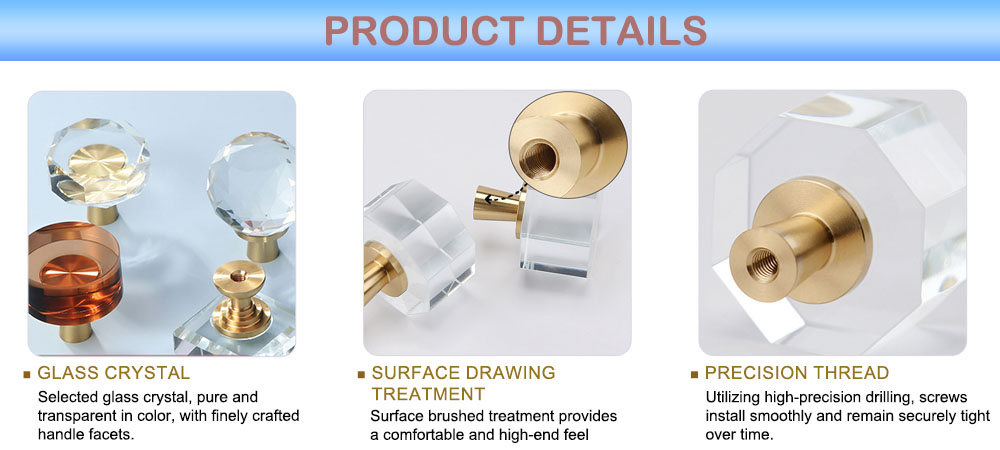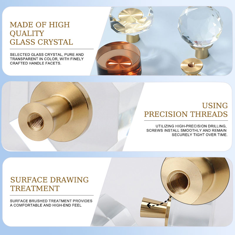 The Brass&Crystal Furniture Knob series knobs are not only suitable for home furniture, but also widely used in various commercial and industrial scenarios.