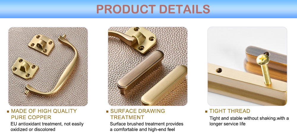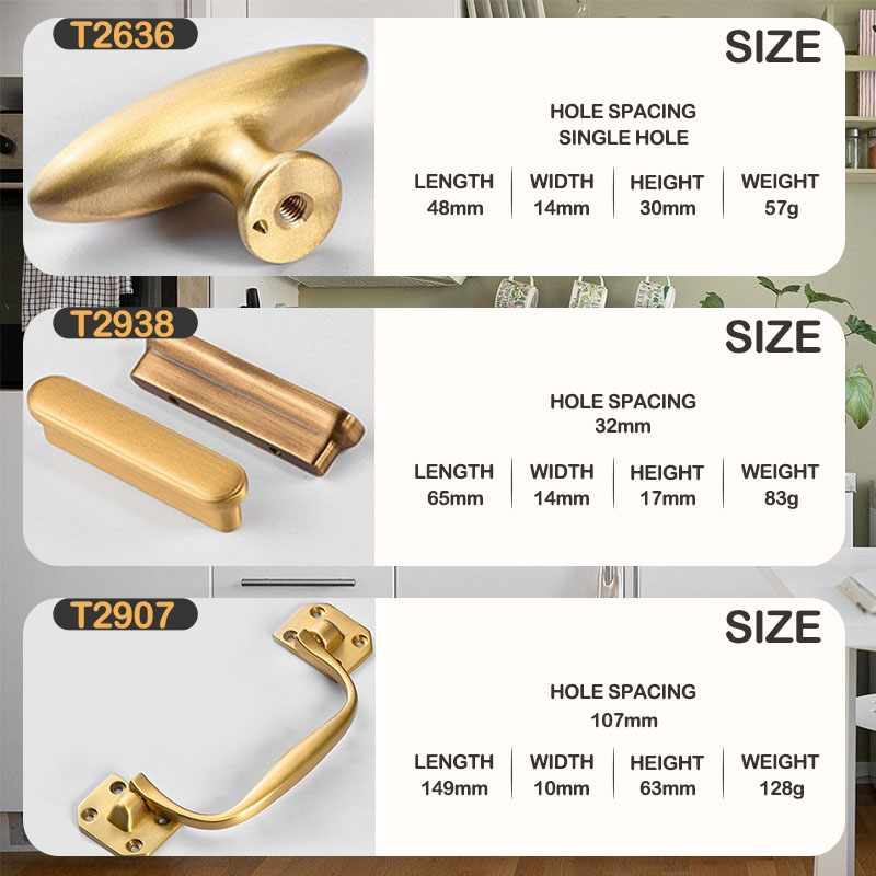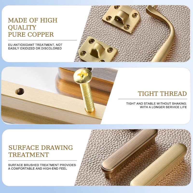Brass is a mixture of copper and zinc, which has high strength and corrosion resistance. It can be used for a long time in various environments without rusting or discoloration due to moisture or frequent use. Therefore, whether in the kitchen, bathroom, or bedroom, brass handles can maintain long-lasting beauty and practicality.