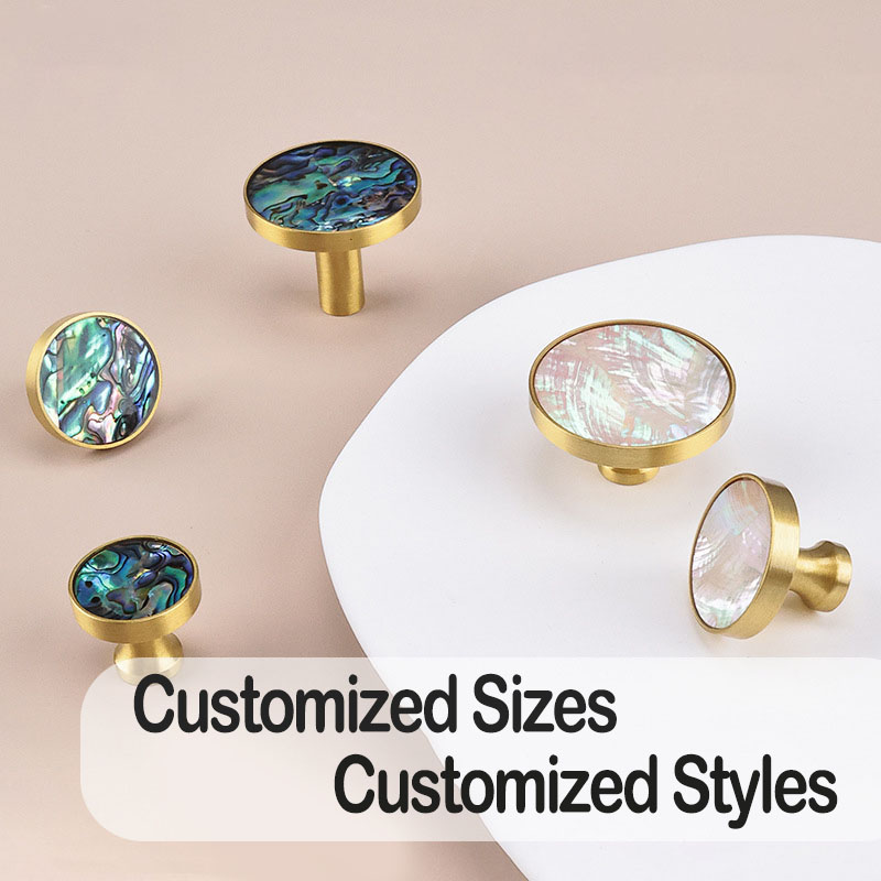 Natural shell and brass round furniture knob perfectly combine functionality and aesthetics, not only as a furniture accessory, but also as a reflection of lifestyle taste. Multiple customization options and wide applicability make this knob the perfect choice for improving home quality. Whether it’s decoration or practicality, this knob can bring you unexpected effects.