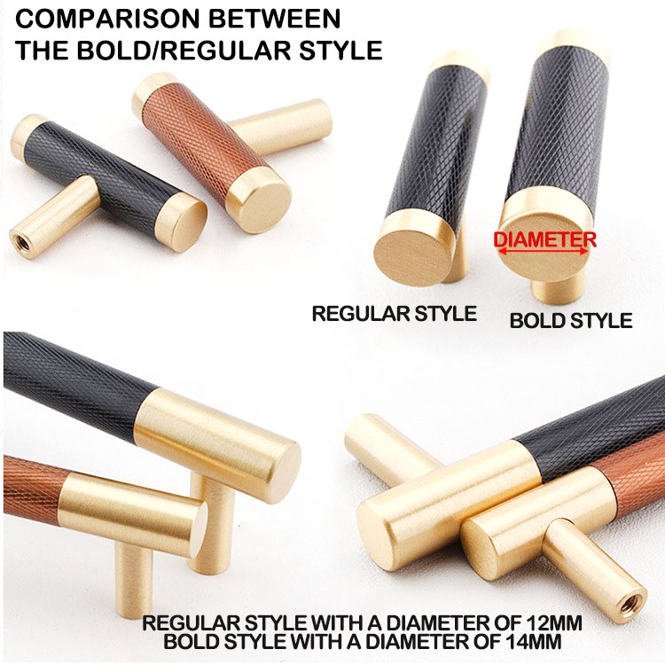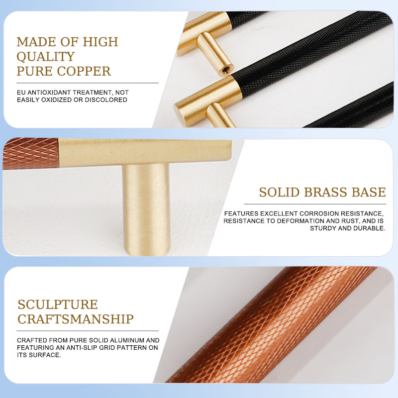 Brass and Aluminum T-Bar Handles combine modern design with high-quality materials, providing both practical functionality and aesthetic appeal. It uses durable space aluminum and brass materials, which resist slipping and corrosion, making it suitable for various home and commercial spaces. Whether it’s standard specifications or customized options, it can meet your personalized needs.