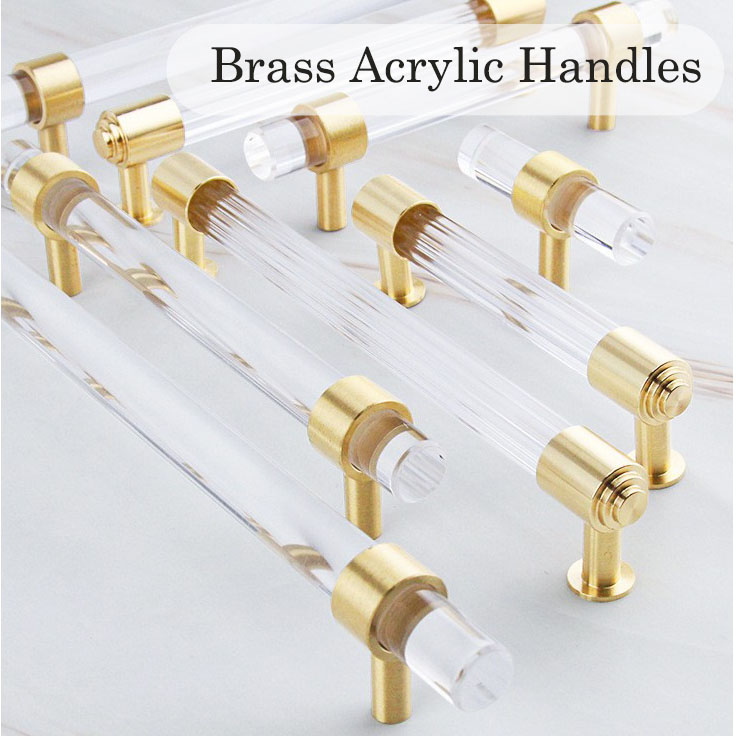 Sleek T-bar Brass Acrylic Handles