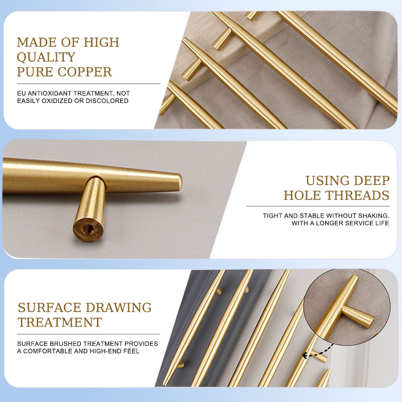 Solid brass T-shaped furniture handles are not only practical hardware accessories, but also works of art that add texture to furniture. Its detailed design and high-quality craftsmanship make every piece of furniture stand out due to its embellishment. Choose this T-shaped handle to inject the perfect combination of fashion and quality into your home or commercial space!ercial space!